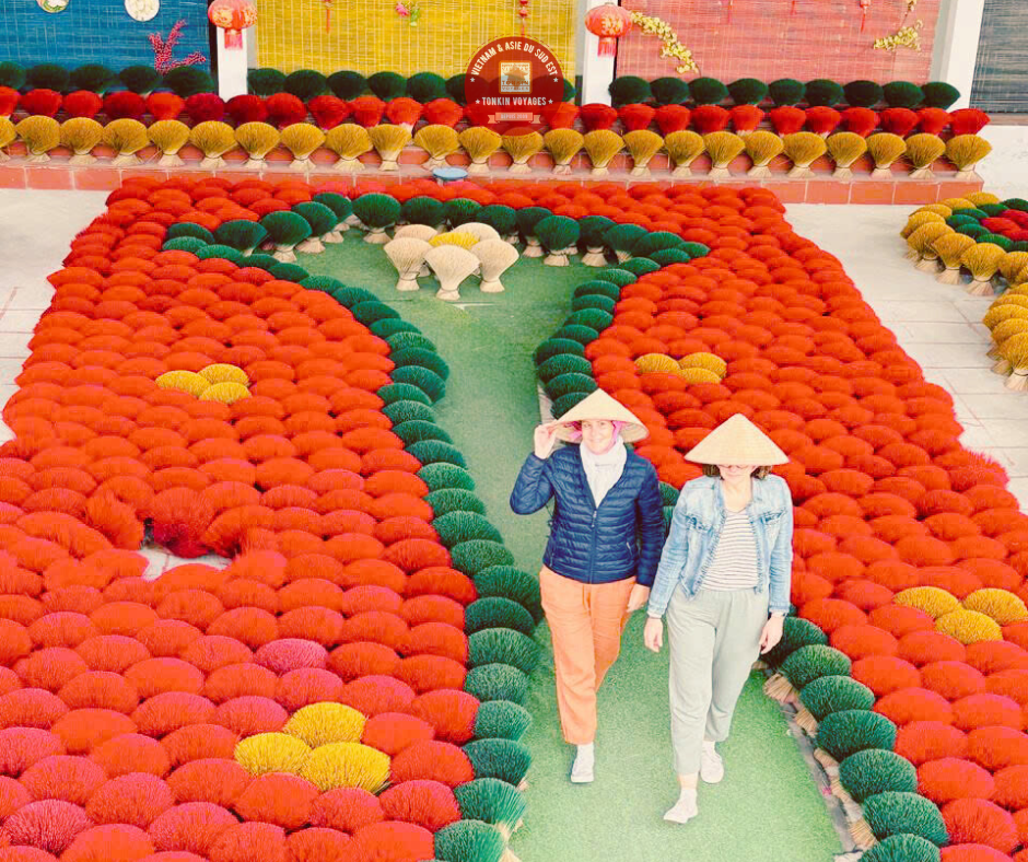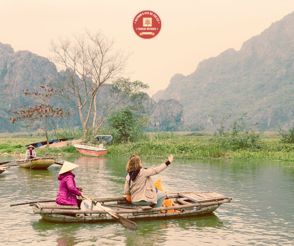 En fin de la journée pour éviter le tourisme de masse : Embarquement dans une barque à rames en bambou, vous profitez une promenade inoubliable de Tam Coc à travers un paysage unique entre des rizières inondées et les pitons karstiques en passant des 3 belles grottes qui nomme son nom. Un spectacle à la fois sublime et reposant. (Tam Coc est touristique mais très beau en Mars – Avril – Mai – Août – Sep - Oct et le moment proposé est beaucoup moins touristique).
